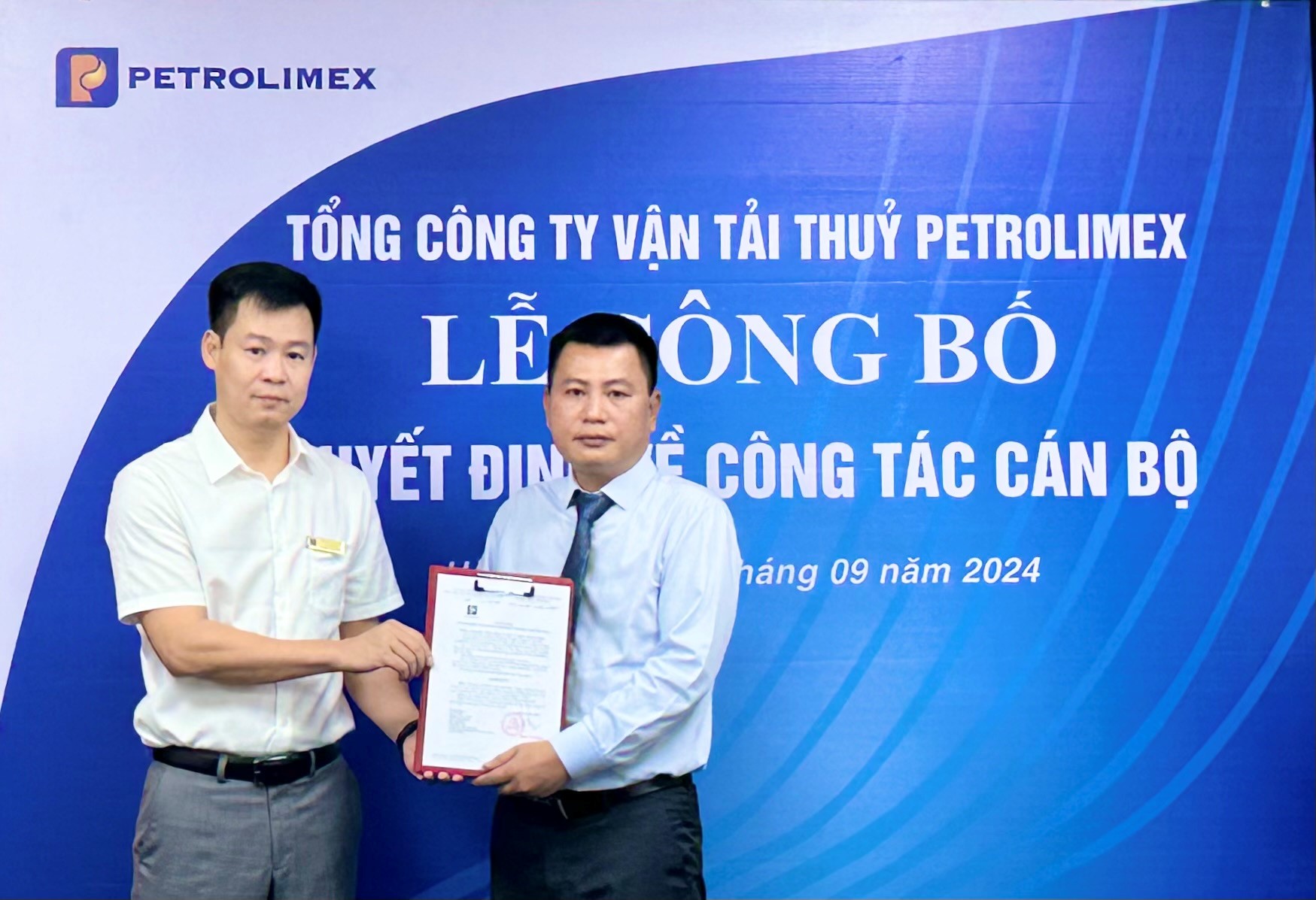 Sáng ngày 30/09/2024, Tổng công ty vận tải thủy Petrolimex đã tổ chức Lễ công bố các Quyết định về công tác cán bộ đối với hai chức danh Trưởng phòng Kinh doanh và Phó trưởng phòng Tổ chức Hành chính.