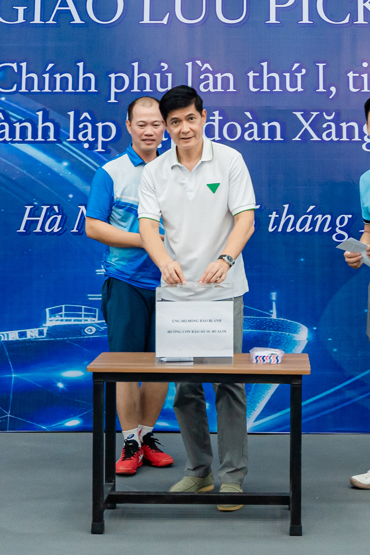 Ngay tại lễ khai mạc giải thi đấu, Ban Tổ chức đã phát động quyên góp ủng hộ đồng bào đang chịu thiệt hại nặng nề do cơn bão số 10 gây ra. Với tinh thần “tương thân tương ái”, các đồng chí lãnh Tập đoàn, Tổng công ty và đông đảo cán bộ, đoàn viên công đoàn có mặt tại giải đấu đã nhiệt tình đóng góp ủng hộ. Hoạt động quyên góp ủng hộ sẽ tiếp tục triển khai rộng rãi và khẩn trương tại Văn phòng Tổng công ty và các đơn vị trong những ngày tới. Toàn bộ số tiền quyên góp được sẽ được Ban Chấp hành Công đoàn chuyển tới Ủy ban Trung ương Mặt trận Tổ quốc Việt Nam để kịp thời hỗ trợ các địa phương khắc phục hậu quả.
